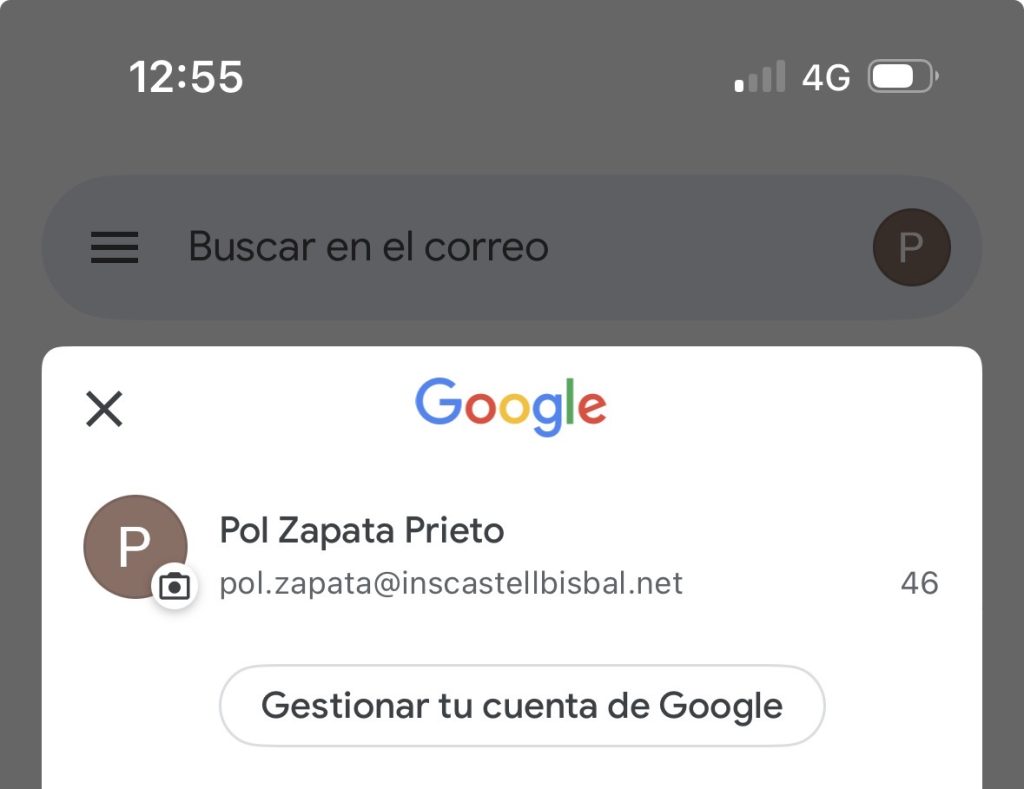 he buscat al mobil gmail, després li he iniciat sessió i he posat el correu i després la contrasenya i he pogut entrar