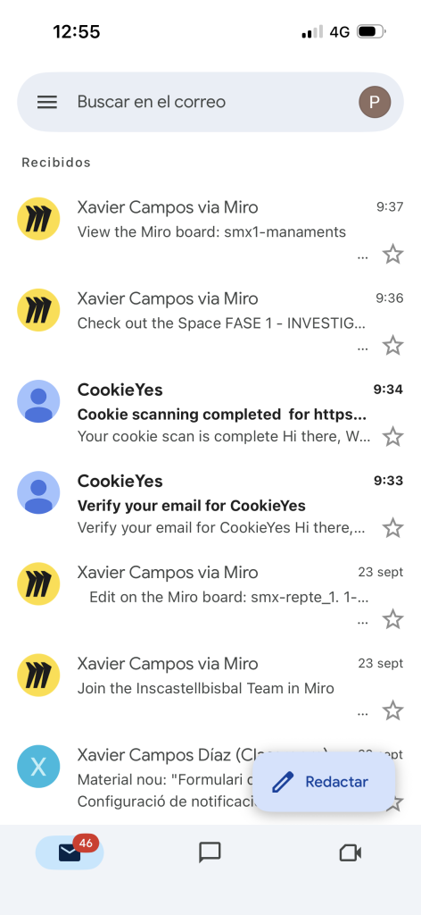 després d’iniciar sessió ja m’arribaven tots els correus al mòbil