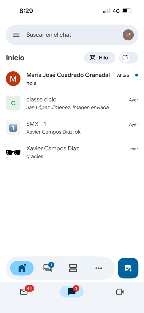 després de veure que m’arribaven tots els correus a baix hi ha tres coses i una és el xat i entre i tenia el xat posat